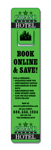Bookmarks & Rulers can be used to promote any product, service or company in a creative and fun way. Perfect for schools, libraries, offices, hotels, motels, any place with books. Sturdy 14 pt. laminated product.