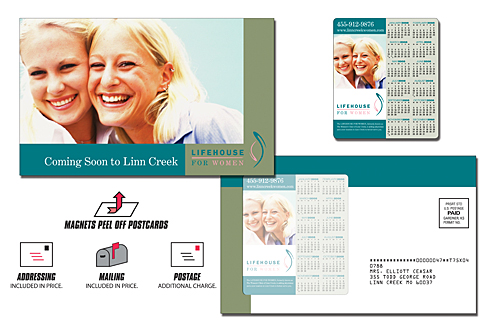 Price includes printing in full-color (four color process) on both sides of postcard and front of magnet, addressing, adhering of magnet to postcard. Metallic or fluorescent colors cannot be printed in full-color.