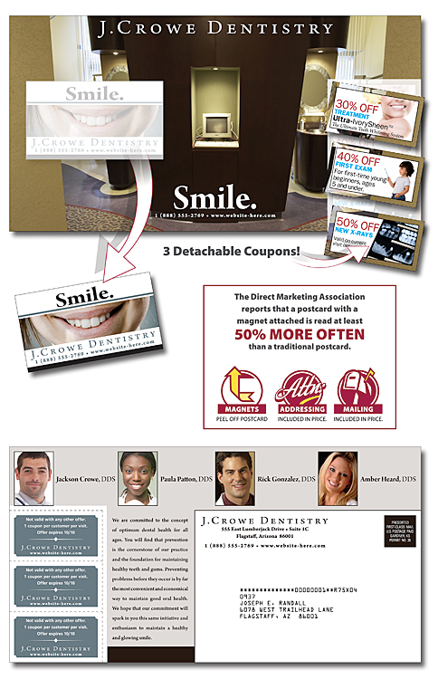 Magna-Peel Postcard 10.5×5.5 with 3 Perforated Coupons and Business Card Magnet 3.5×2