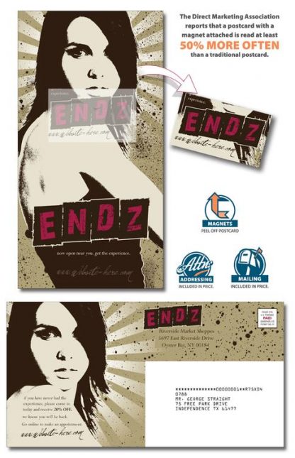 Price includes printing in full-color (four color process) on both sides of postcard and front of magnet, addressing, adhering of magnet to postcard. Metallic or fluorescent colors cannot be printed in full-color (four color process).