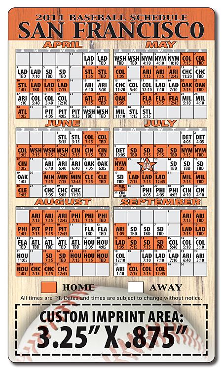 PLEASE NOTE: Dates and times on all schedules are subject to change without notice. Schedules shown online may not represent actual current schedules and are intended to show color, theme, fonts, general layout, etc. of stock schedule. Schedules will be updated as current season approaches. Schedule date and times are taken from official websites of each sport and are subject to change and availability of the individual professional sport scheduling system. Our stock schedules ARE NOT endorsed by any professional sporting organization/team. Various schedules may include TBD’s for game and/or times when order is received 3 weeks prior to opening game week.
